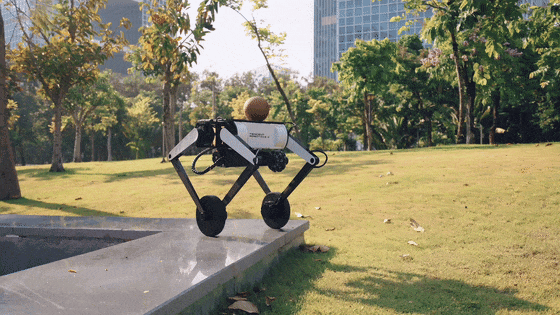 通过不平整的地面时,它会变换身高,抗干扰同时维持稳定性。