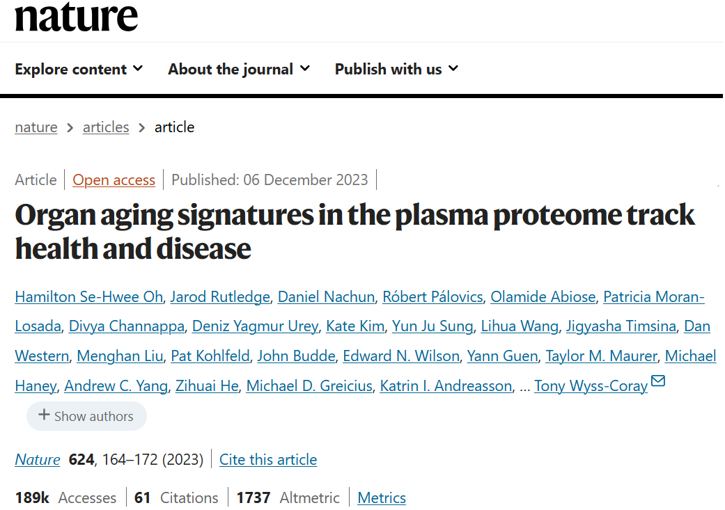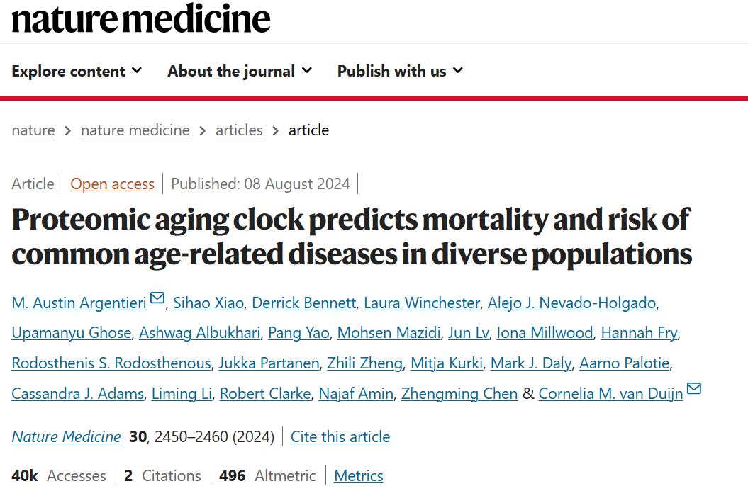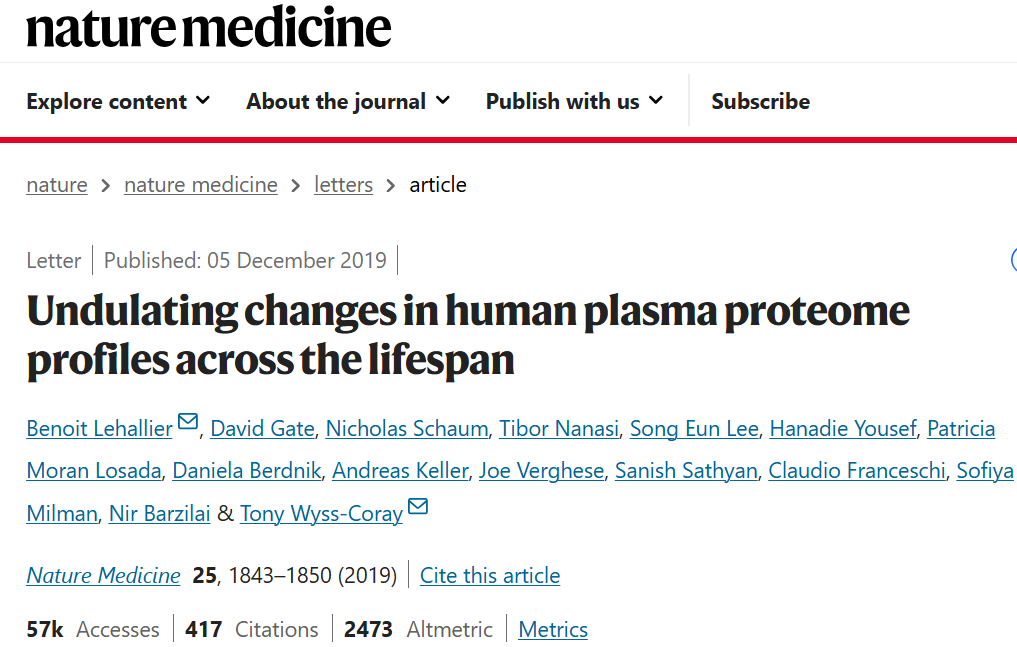 总之,这些研究突出了检测和了解大量血浆蛋白的全新非凡能力。迄今为止的研究已经增强了我们对人类衰老过程的理解,确定了许多器官特异性变化及其可能如何得到有利调节,并提高了使用蛋白质组学评分评估各种疾病风险的潜力。
