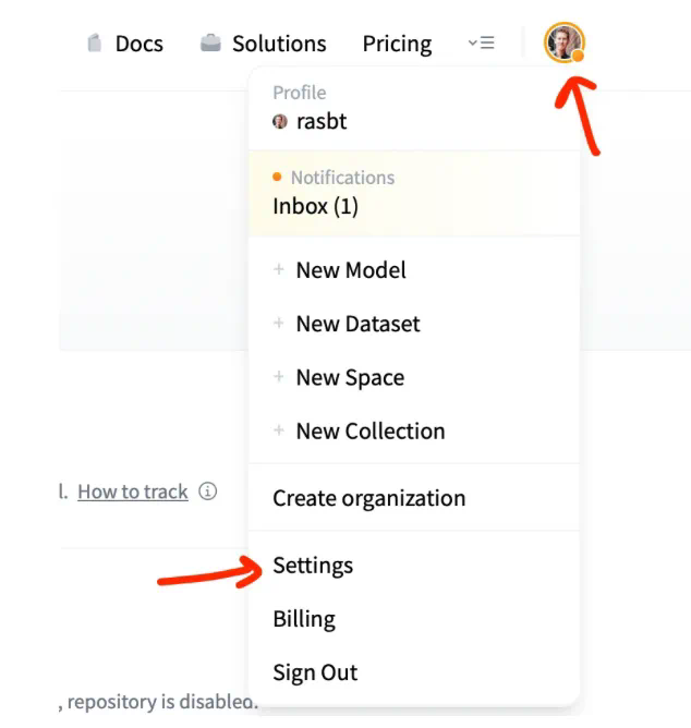 接下来,需要创建一个访问 token;要生成一个具有「读取」权限的访问 token,请点击右上角的个人资料图片,然后点击「设置」。