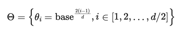 RoPE 的基础值(见下文公式),从 10000(Llama 2)增加到 50000(Llama 3),公式如下(改编自 RoPE 论文):