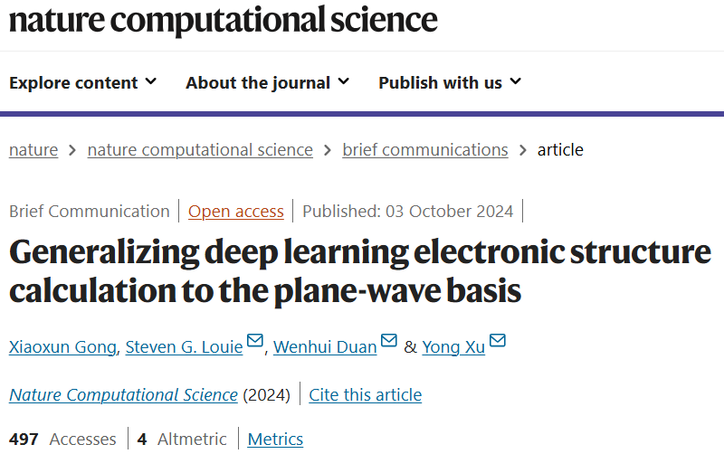 相关研究以「Generalizing deep learning electronic structure calculation to the plane-wave basis」为题,于 10 月 3 日发布在《Nature Computational Science》上。