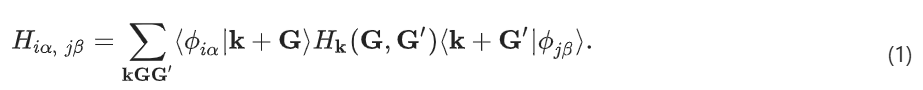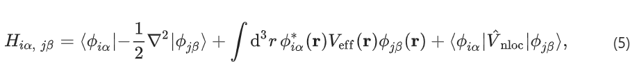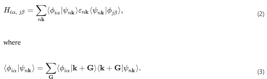 虽然方程 (1) 和 (2) 是将 PW 哈密顿量转换为 AO 基的直接方法,但它们的计算效率较低。此外,它们都相对于系统中的原子数量以立方比例缩放,这限制了它们的应用范围。