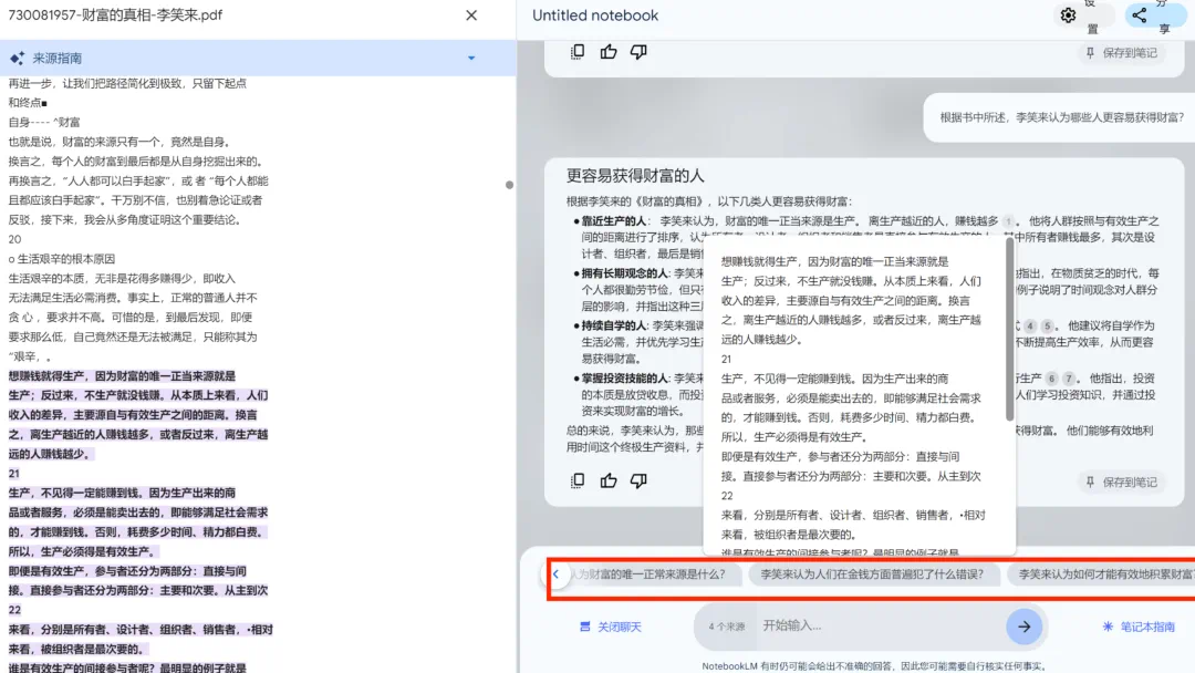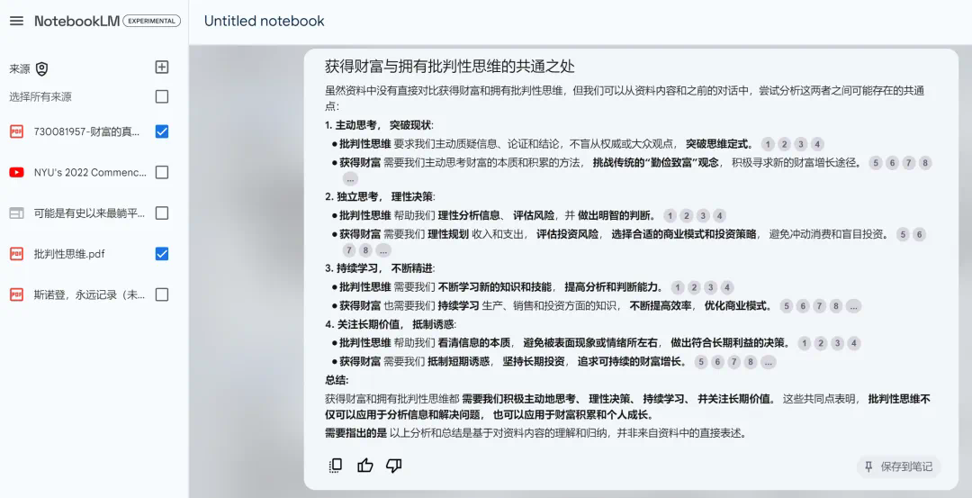 最后,NotebookLM 还有一个很厉害的地方:可以发现文本之间的知识关联。