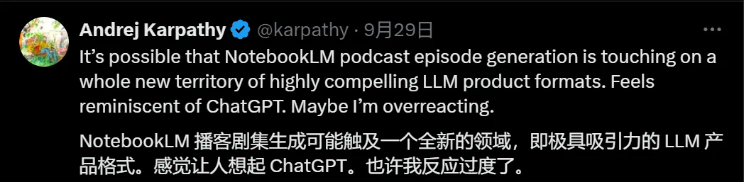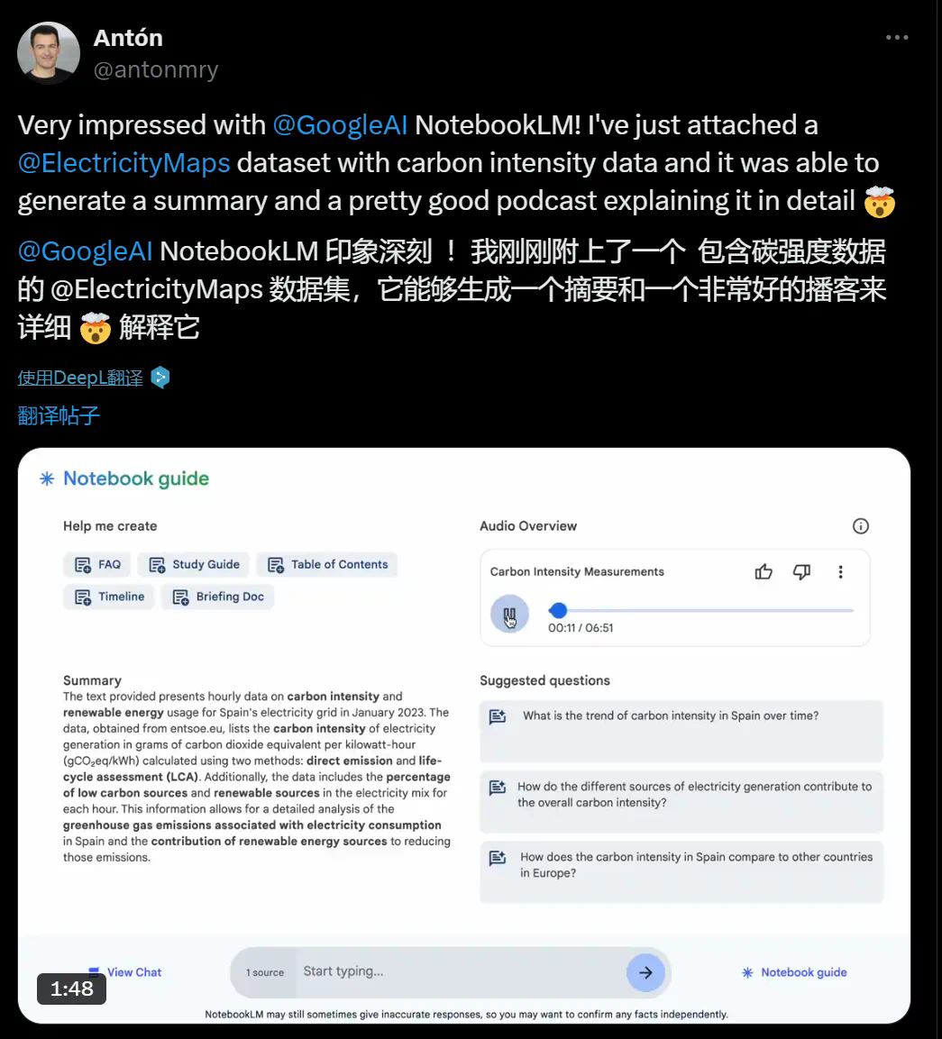 还特别建议人们去听听 AI 生成的「播客」,暗示这个功能特别令人印象深刻。