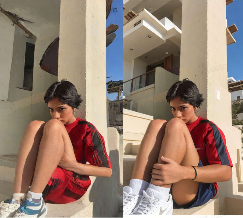 特效中用到了AI扩图和AI消除的能力,其中AI消除是指消除图像中指定的某个物体或区域,并根据周围的背景来填充消除位置的内容;AI扩图则根据指定的扩展比例来延展原图像的内容。这两个任务本质上都是根据已知图像的内容去填充周围的区域,重点在于如何让填充的内容和原图没有违和感。