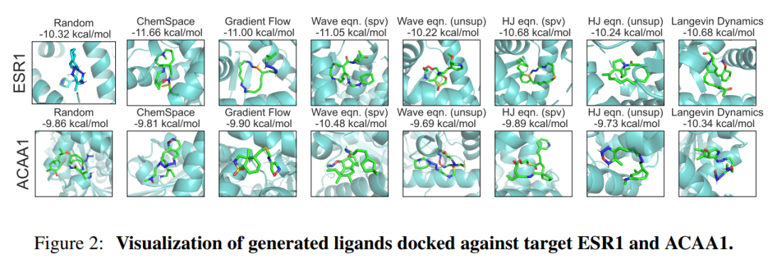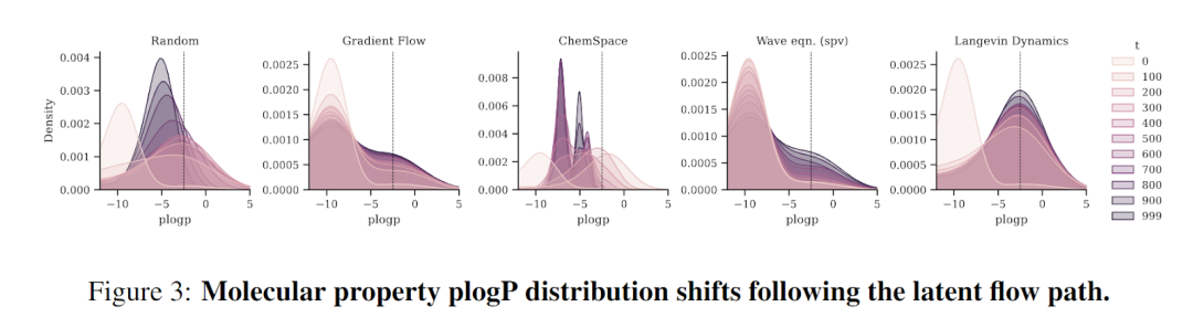 其中,HJ是哈密顿-雅可比方程(Hamilton Jacobi),LD是朗之万动力学(Langevin Dynamics)。实验结果表明,ChemFlow能够有效地在潜在空间中找到通往目标属性区域的路径,生成的分子在保持原有结构特征的同时,实现了预期的属性变化。