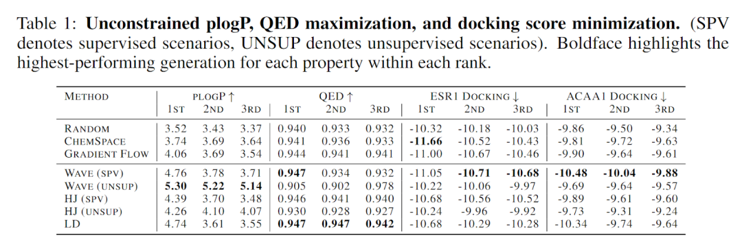 为了验证ChemFlow框架的有效性,研究者们在多个任务上进行了广泛的实验,包括分子操控、单目标和多目标的分子优化任务,涵盖了物理化学性质、药物相关属性和蛋白质-配体结合亲和力等多种指标。实验在有监督(spv)和无监督(unsup)的设置下,评估了ChemFlow的性能。