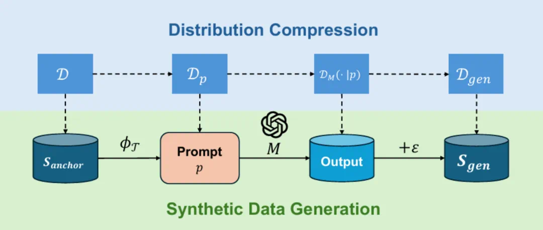 合成数据的生成可以形象化的表达为如下的过程 [11]。记用于产生 prompt
