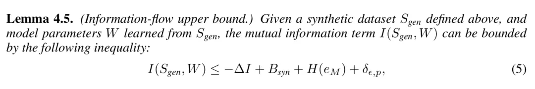 我们基于上述分析,从信息论的角度为合成数据训练的模型提出了泛化误差上界,并揭示了用于合成数据生成的生成模型所带来的信息增益的重要地位。