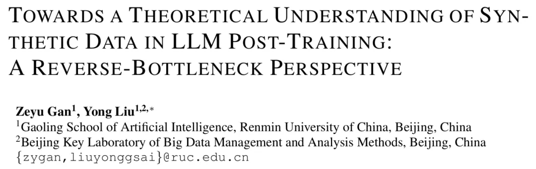 论文标题:Towards a Theoretical Understanding of Synthetic Data in LLM Post-Training: A Reverse-Bottleneck Perspective -