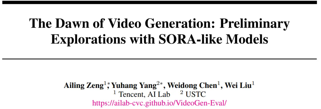 论文题目:The Dawn of Video Generation: Preliminary Explorations with SORA-like Models -