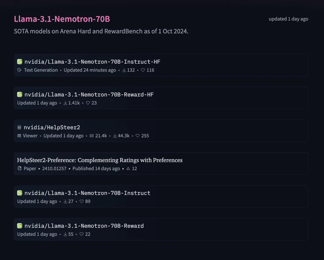 模型合集地址:https://huggingface.co/collections/nvidia/llama-31-nemotron-70b-670e93cd366feea16abc13d8