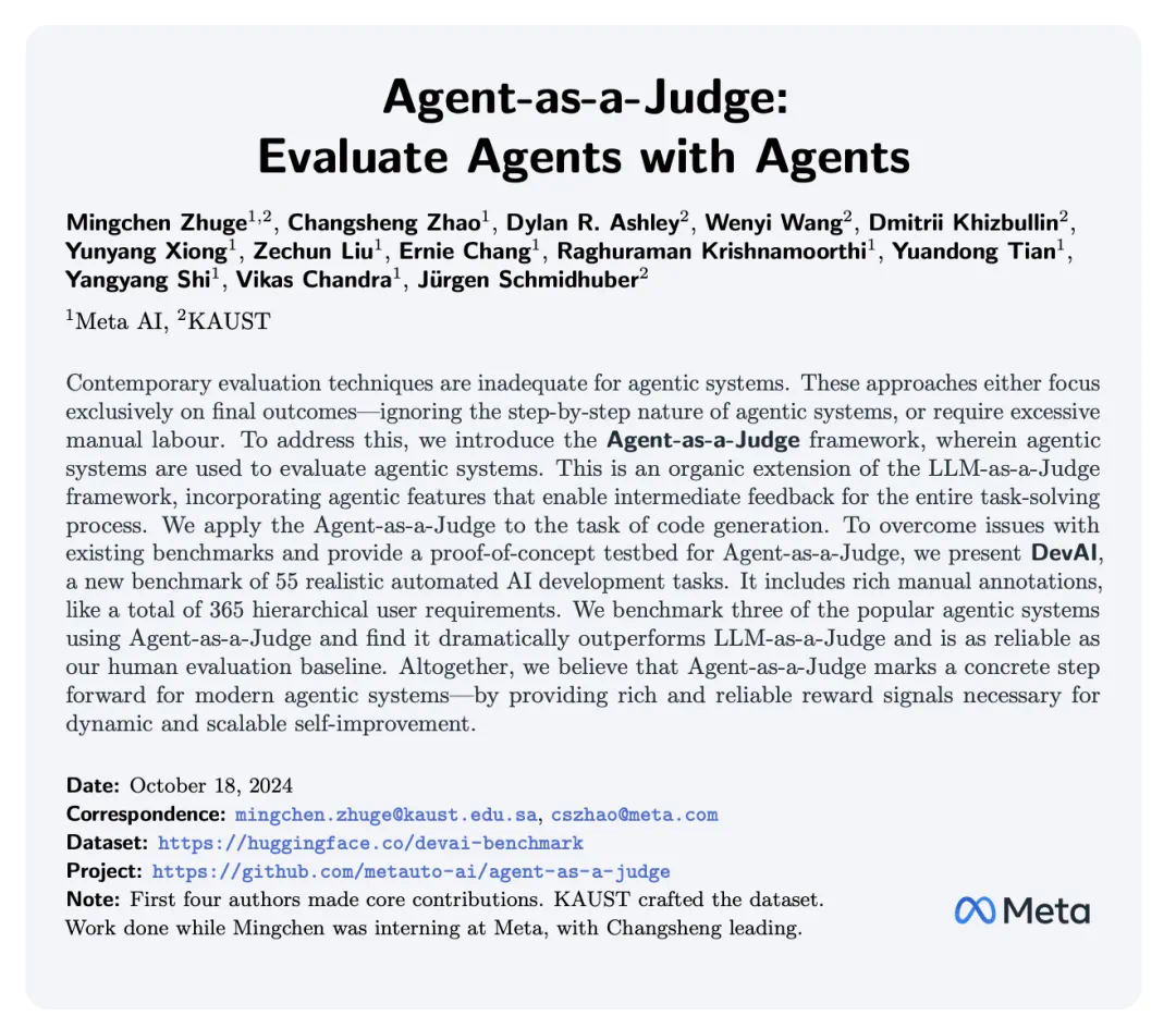 文章来源于互联网:卷起来!让智能体评估智能体,Meta发布Agent-as-a-Judge