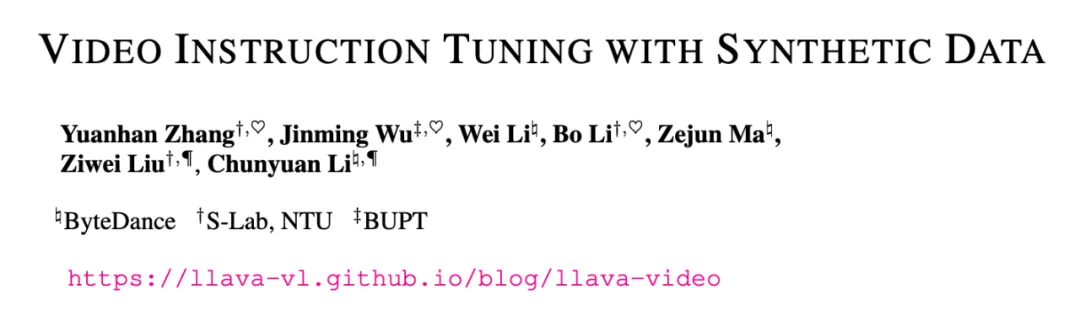论文标题:VIDEO INSTRUCTION TUNING WITH SYNTHETIC DATA -