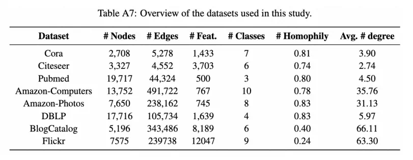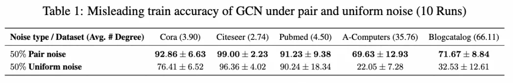 从 Table 2 中可以看出,标签噪声的传播效应在平均度较低的稀疏图(如 Cora、 Citeseer、Pubmed 和 DBLP)上非常严重,但在密集图(如 Amazon-Computers、 Amazon-Photos、Blogcatalog 和 Flickr)上则不明显。对此现象的解释是:稀疏图上的未标记节点在其邻域中通常只有有限数量的标注节点可用于监督,所以这些未标注节点的预测结果在很大程度上依赖于其邻域中有限的标注节点,如果这些节点被错误标注,则很容易导致未标注节点表示的错误学习。相比之下,对于密集图,未标注节点的邻域包含许多可以作为参考的标注节点。