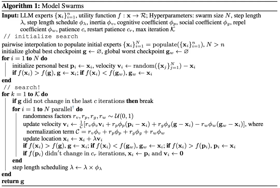 论文标题:MODEL SWARMS: COLLABORATIVE SEARCH TO ADAPT LLM EXPERTS VIA SWARM INTELLIGENCE