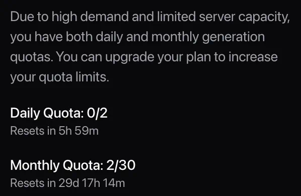 不过,每6小时仅有 2 次免费生成机会,且用且珍惜吧。