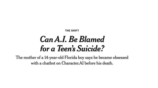 就在刚刚,《纽约时报》发布了一篇题为《一位青少年自杀,能责怪 AI 吗?》的报道,其中提到一位使用该公司 AI 角色扮演应用的青少年用户 Sewell Setzer III 在与聊天机器人对话数个月之后选择自杀。之后死者母亲向 Character.ai 发起了法律诉讼。