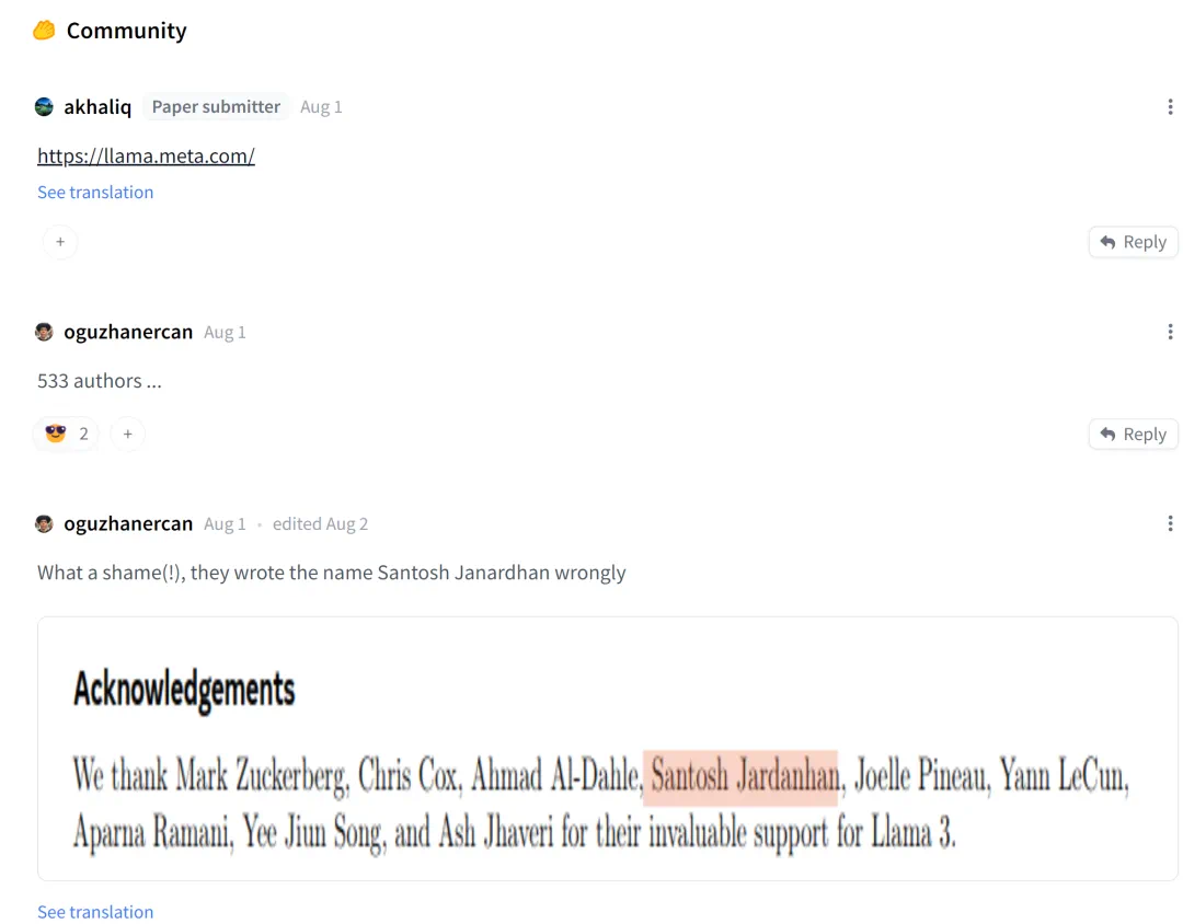 二者打通之后有多方便呢?以直达「Hugging Face 论文」为例,在找到这篇论文后,点击「View on Hugging Face」,你就直接来到了 Hugging Face 的论文评论区,可以和同行们实时交流。