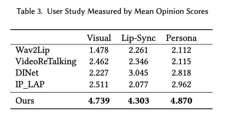 Dual-Attention Face Rendering:在渲染过程中,作者团队创新性地设计了两个并行的注意力模块 Face-Attention 和 Lip-Attention,通过 Cross Attention 来融合 3D 动画和人物参考图特征,分别渲染脸部和嘴部的纹理。在推理过程中,文中还针对这两个模块分别设计了参考图挑选策略,其中人脸部分参考图从以当前帧为中心的一个滑动窗口中来获取,以此降低人脸纹理的采集和生成难度,确保视频画面的稳定性和保真度;口型部分则是先按照口型张幅大小对整个视频中的人脸进行排序,然后均匀挑选出不同张幅的口型图片组成一个集合,以确保口腔内的信息可以被完整性获取。