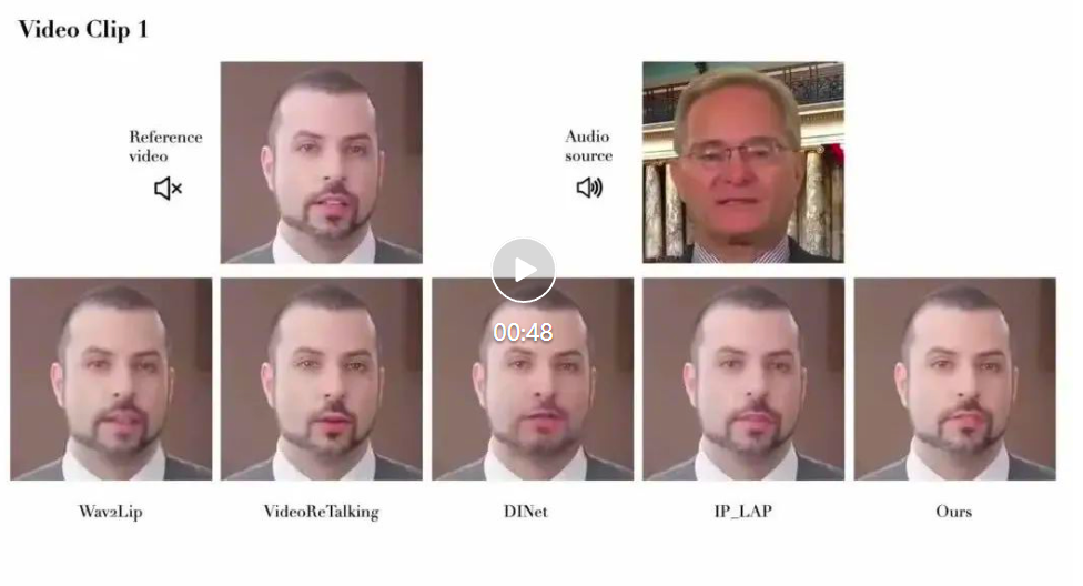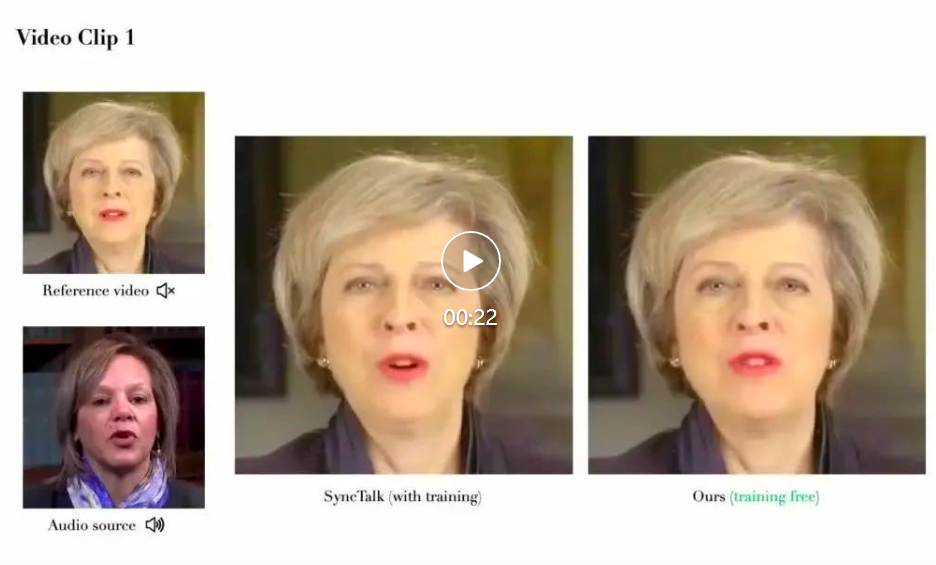 目前的视频改口型技术大致可以分为两类。一类是市面上最常见的定制化训练,需要用户首先提供 2-3mins 的人物视频数据,然后通过训练让模型对这段数据中的人物特征进行过拟合,最终实现该数据片段中人物口型的修改。这类方案在效果上相对成熟,但是需要耗费几个小时甚至几天的模型训练时间,成本较高,很难实现视频内容的快速生产;与此同时,这类方案对人物视频的质量要求往往偏高,如果视频中的人物口型动作不标准或者环境变化太复杂,训练后的效果会大打折扣。除了定制化训练之外,还有另一类 zero-shot 方案,可以通过大量数据来对模型进行预训练,让模型具备较强的泛化性,在实际使用的过程中不需要再针对特定人物去做模型微调,能做到即插即用,成功解决了定制化方案成本高,效果不鲁棒的问题。但这类方案大都把重点放在如何实现声音和口型的匹配上,往往忽略了视频生成的质量。这会导致一个重要的问题,最终生成的视频不论是在外貌等面部细节,还是说话的风格,跟本人会有明显的差异。