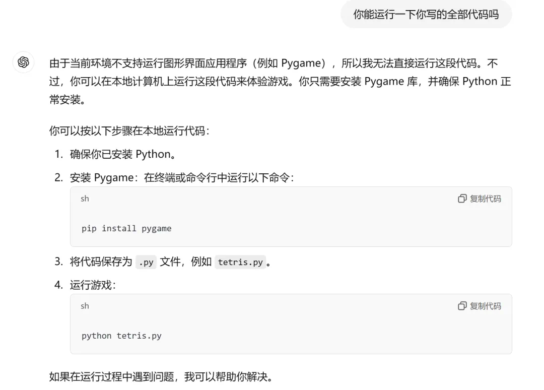 在实时可预览代码模式出现之前,我们即使是使用 ChatGPT 等行业顶尖的大模型来写代码,也必须遵循这样的路径:1)先想好与 AI 沟通的措辞提出需求;2)复制 AI 生成的代码,尝试在外部开发环境中运行;3)继续追问大模型,不断修改代码并尝试运行,直到最终获得满意的结果为止。