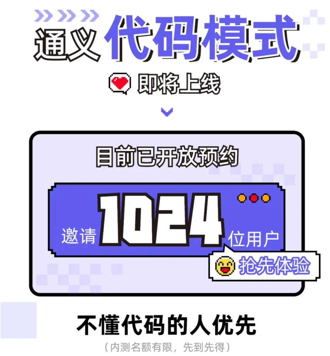 10 月 24 日,阿里旗下的通义正式宣布了「代码模式」,并开放试用预约,首批邀请 1024 名用户进行体验。
