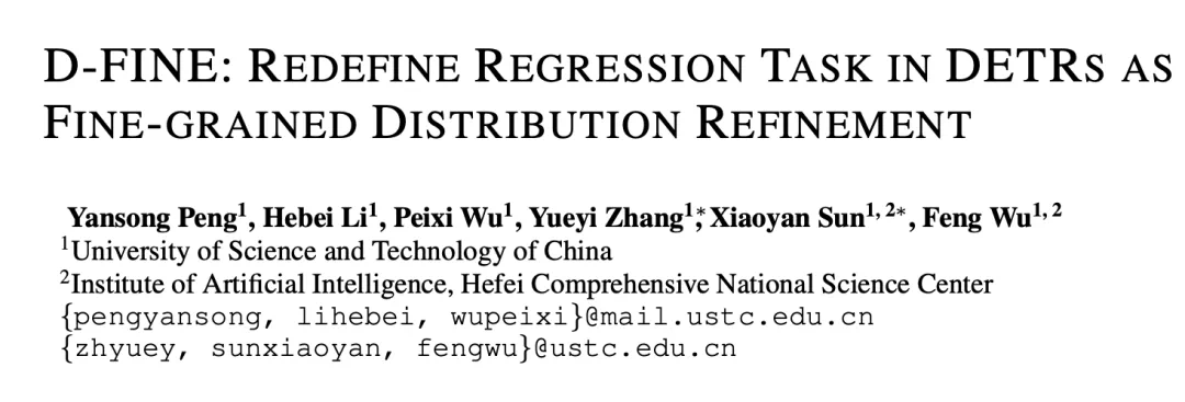 论文标题: D-FINE: Redefine Regression Task of DETRs as Fine-grained Distribution Refinement