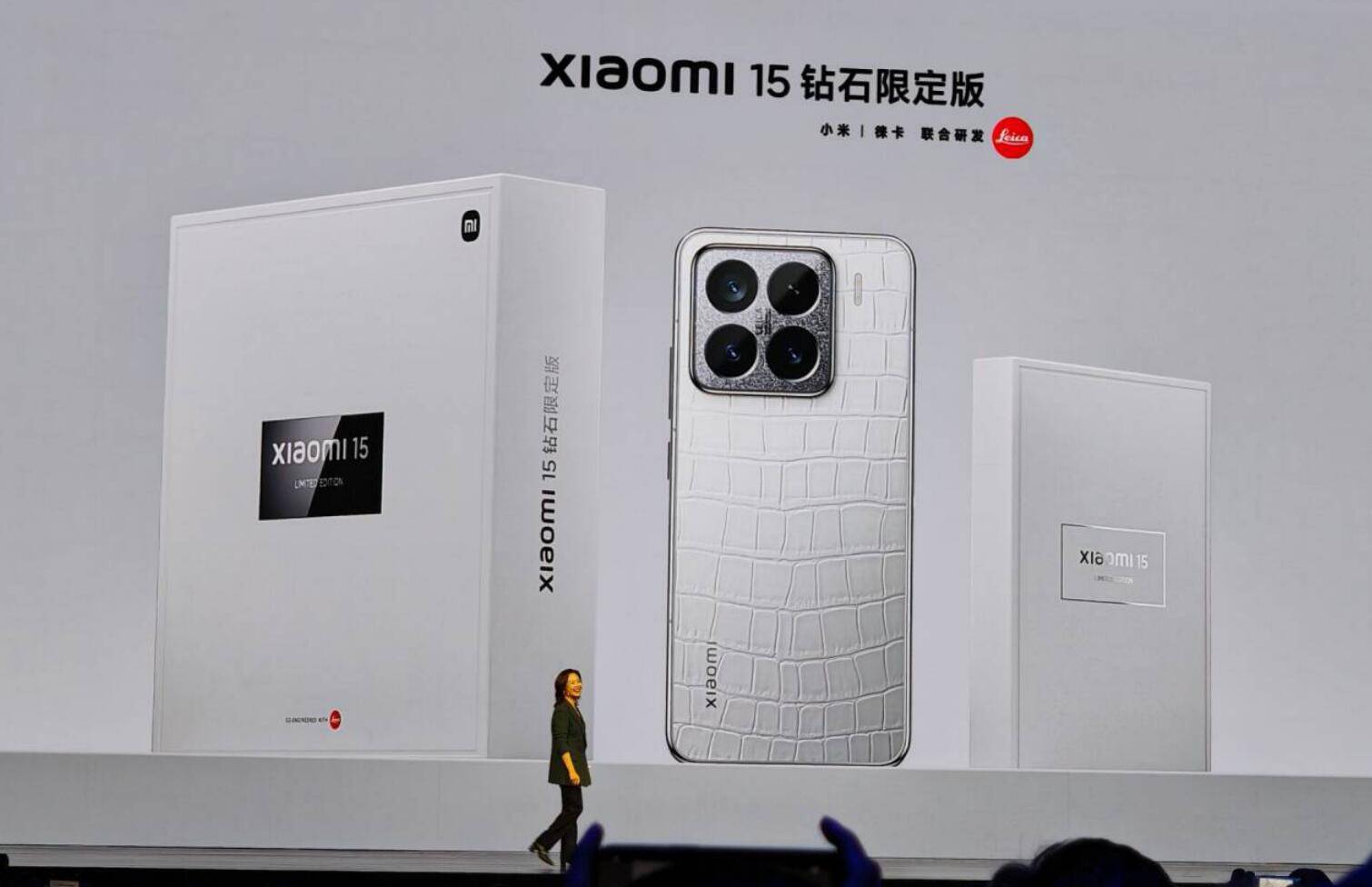 其中 Xiaomi 15 钻石限定版以「钻在手心」为设计理念。手机中框镶嵌一枚环保培育钻石,57 个切面光彩夺目,与高亮金属中框相映生辉;背部采用科纳皮材质,鳄鱼皮纹理,提供冰川白、大象灰、橙色三种版本可选,随手机赠送同色鳄鱼纹科纳皮卡片夹、护照夹。