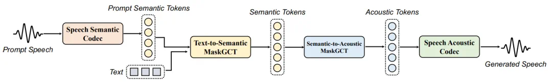 本文介绍了一种名为 Masked Generative Codec Transformer(MaskGCT)的全非自回归 TTS 模型。