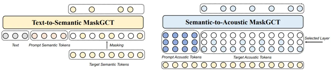 语义到声学模型同样采用非自回归掩码生成 Transformer,该模型以语义标记为条件,生成多层声学标记序列以重建高质量语音波形。