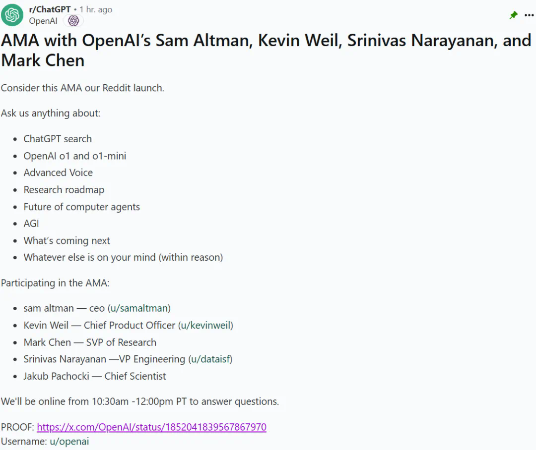 https://www.reddit.com/r/ChatGPT/comments/1ggixzy/ama_with_openais_sam_altman_kevin_weil_srinivas/