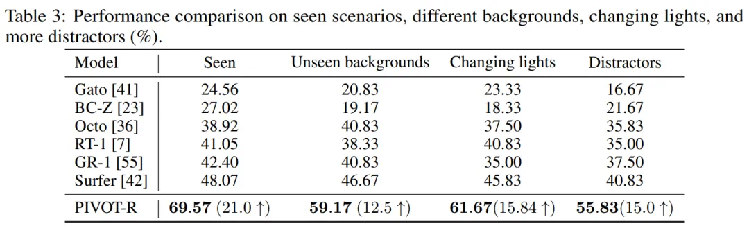 作者也在 SeaWave 上做了泛化性测试,在三种泛化性测试场景下,PIVOT-R 仍保持远高于其他模型的成功率。