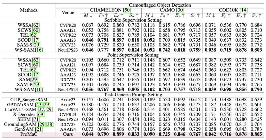 这项研究由来自伦敦大学玛丽女王学院和上海交通大学的研究团队进行的,他们开发了名为 ProMaC 的框架,该框架创新性地利用了大模型在预训练过程中产生的幻觉。不仅能够准确识别图像中的目标对象,还能判断这些对象的具体位置和形状,这在伪装动物检测或医学图像分割等复杂任务中表现尤为出色。