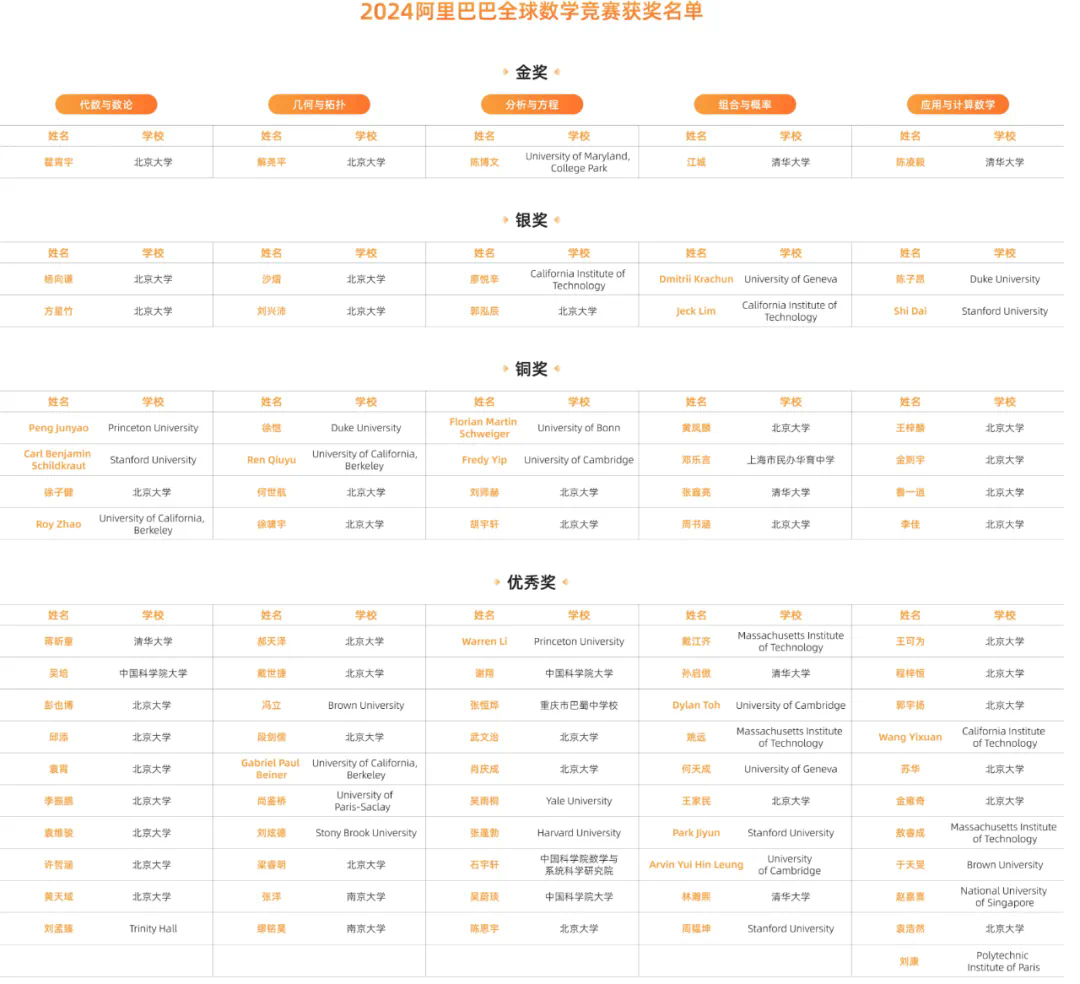 2024 阿里巴巴全球数学竞赛决赛完整的获奖名单
