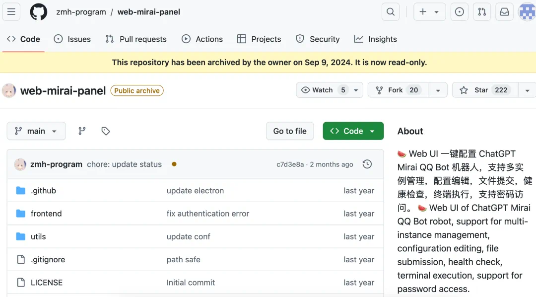 项目链接:https://github.com/zmh-program/web-mirai-panel