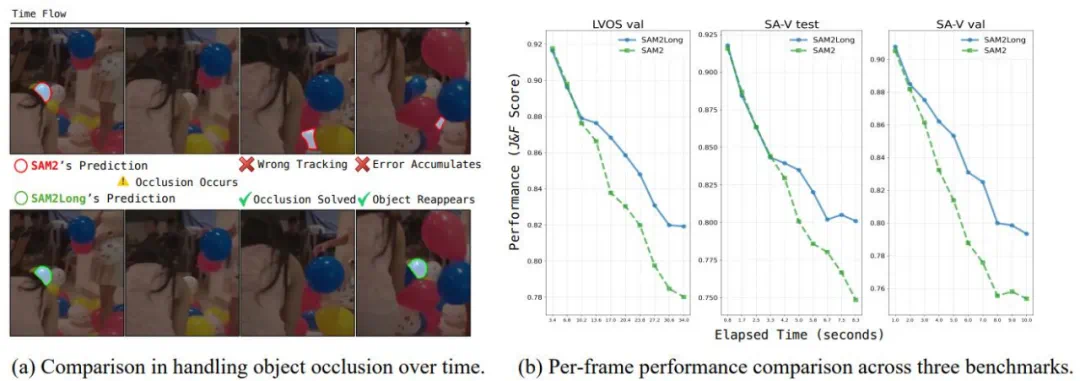 Segment Anything Model 2(SAM 2)在传统视频目标分割任务大放异彩,引起了众多关注。然而,港中文和上海 AI Lab 的研究团队发现 SAM 2 的贪婪选择策略容易陷入「错误累积」的问题,即一次错误的分割掩码选择将影响后续帧的分割结果,导致整个视频分割性能的下降。这个问题在长视频分割任务中显得更加严重。