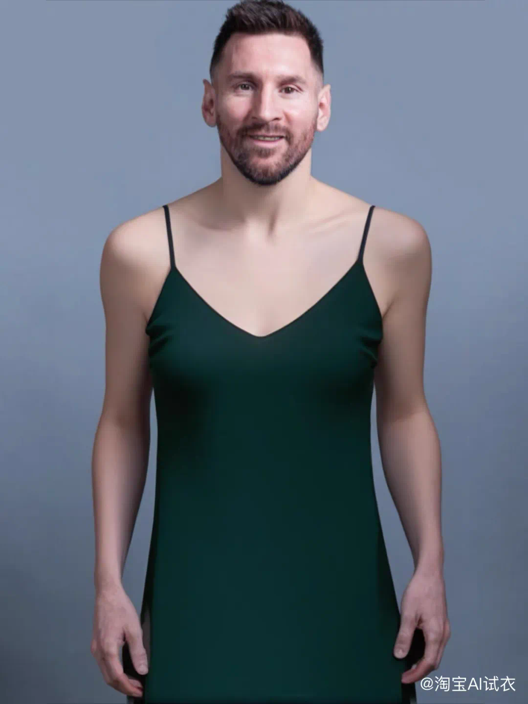 来瞅瞅它生成的穿吊带连衣裙的梅西,笑不活了。