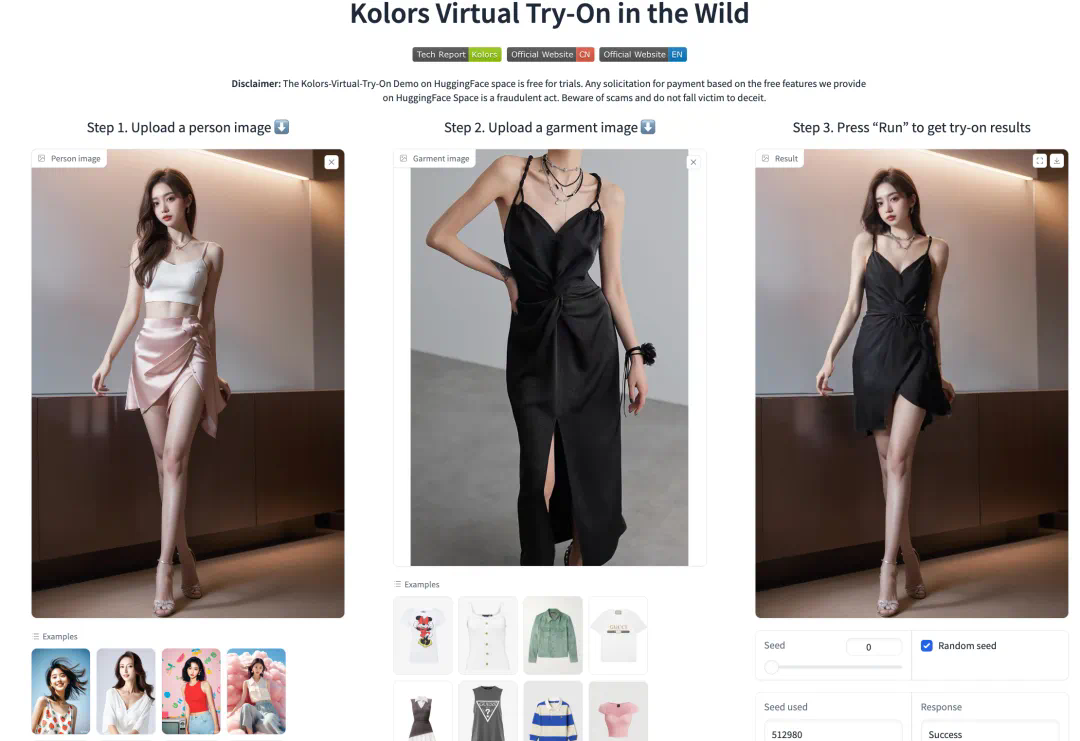 前段时间,快手也推出了一个 AI 换衣项目 ——Kolors Virtual Try-On in the Wild。