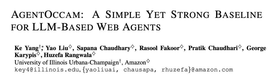 论文名:AgentOccam: A Simple Yet Strong Baseline for LLM-Based Web Agents