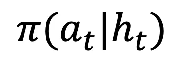 ,最大化预期累积奖励,其中 h_t 表示观测历史