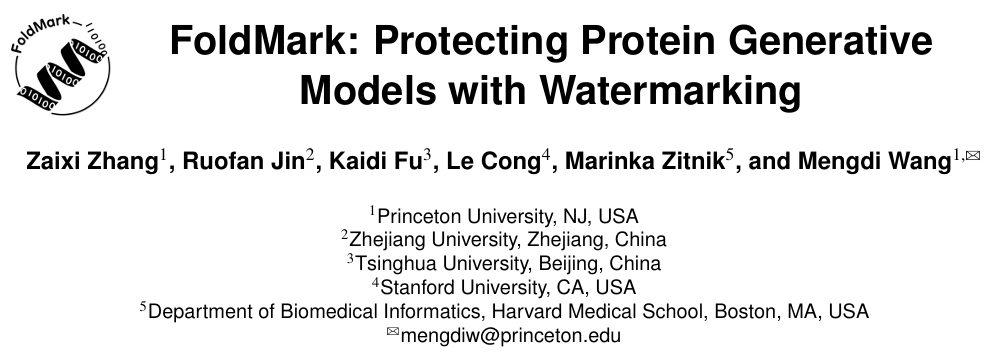 普林斯顿大学王梦迪团队提出 FoldMark,这是一种用于蛋白质生成模型的通用水印方法。