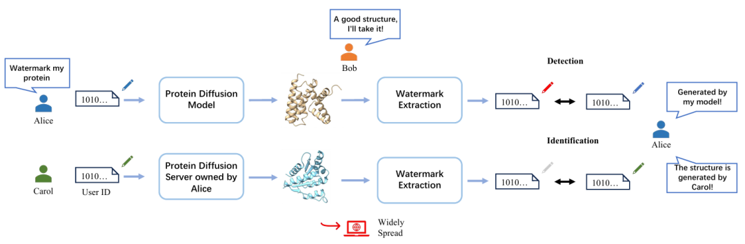 生物大模型的构建和训练十分昂贵,有着保护模型版权和生成结果的现实需要;同时,需要有技术可靠地追踪和验证生成蛋白质结构,消除潜在的生物安全隐患。