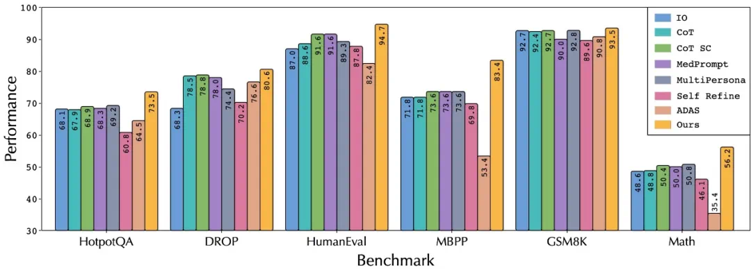 这是对提示词自动优化的进一步探索,通过蒙特卡洛树搜索,完全接管了 Agentic Workflow 的生成与优化过程,表现远超其他工作流自动优化工作,甚至超越了对比的所有手工工作流基线。