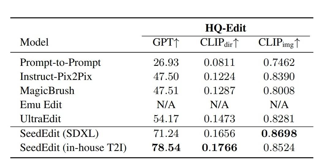 (HQ-Edit等基准测评显示:SeedEdit能理解相对模糊的指令,且执行细致编辑时具有更高的图像保持率和成功率)