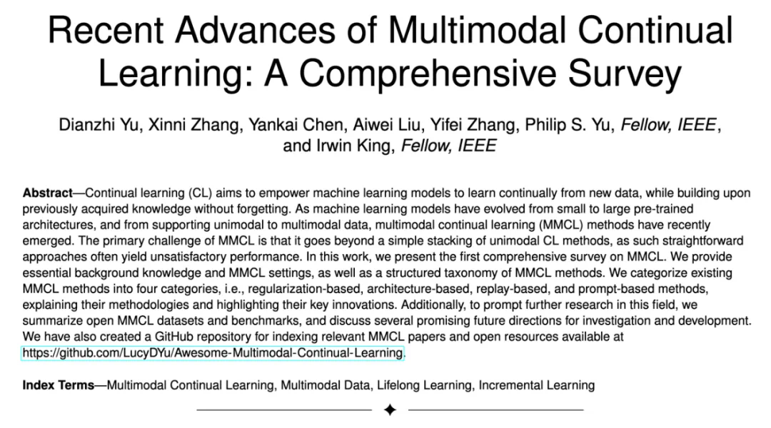 论文标题:Recent Advances of Multimodal Continual Learning: A Comprehensive Survey -