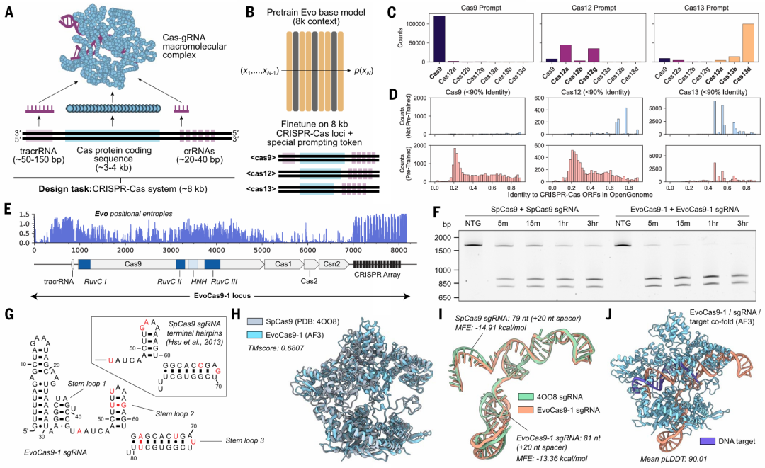 像 ChatGPT 这样的 AI 模型如此有用的一个原因是它们可以创建新内容。「我们想证明我们的模型有这种能力,」Hie 说。因此,他的团队让 Evo 设计新版本的 CRISPR 基因组编辑器。这项任务很有挑战性,因为 CRISPR 包括两种必须协同工作的组件:DNA 切片 Cas 蛋白和将酶引导到要编辑的基因组位置的 RNA 分子。