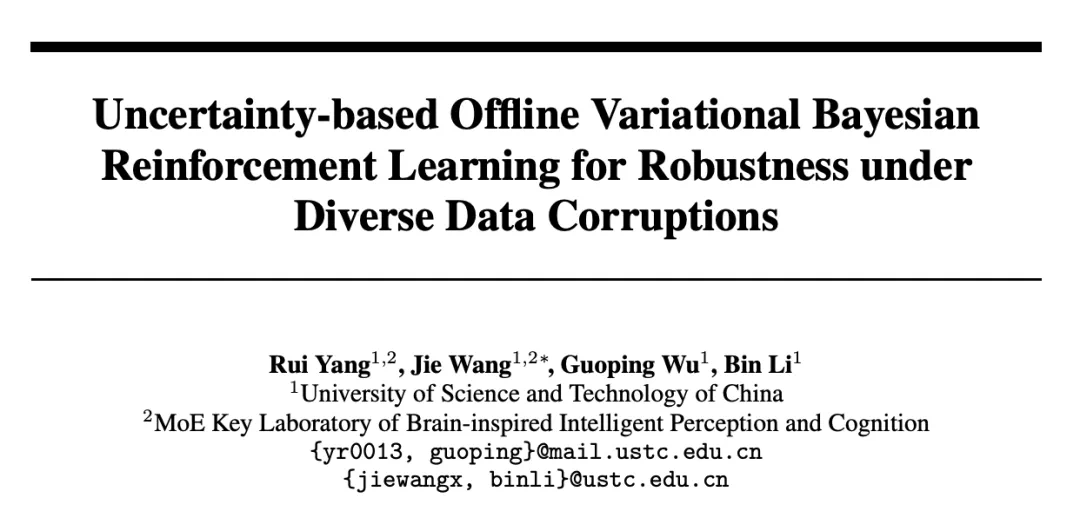 近日,中科大王杰教授团队 (MIRA Lab) 针对离线强化学习数据集存在多类数据损坏这一复杂的实际问题,提出了一种鲁棒的变分贝叶斯推断方法,有效地提升了智能决策模型的鲁棒性,为机器人控制、自动驾驶等领域的鲁棒学习奠定了重要基础。论文发表在 CCF-A 类人工智能顶级会议 Neural Information Processing Systems(NeurIPS 2024)。