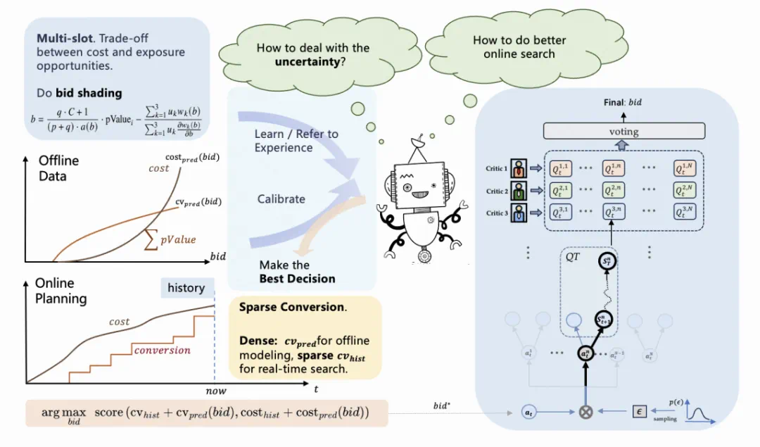 通用赛道关注不确定环境中的自动出价,需要解决数据稀疏性、转化方差、多坑等不确定问题;