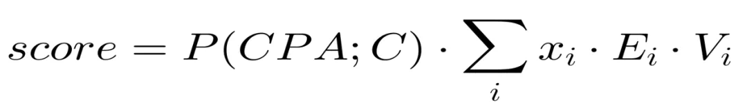 定义为广告主 j 的广告曝光给用户时的转化动作概率,